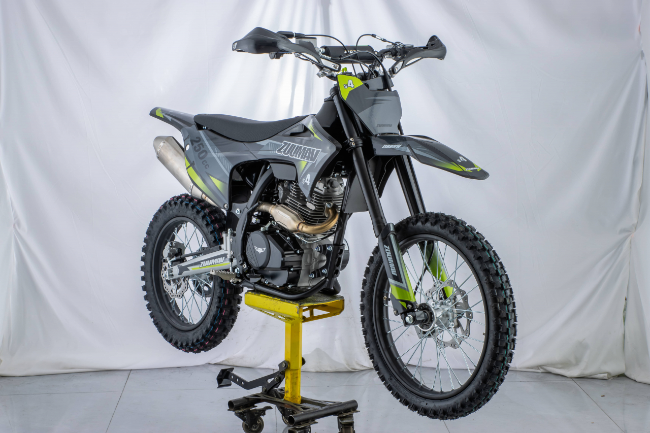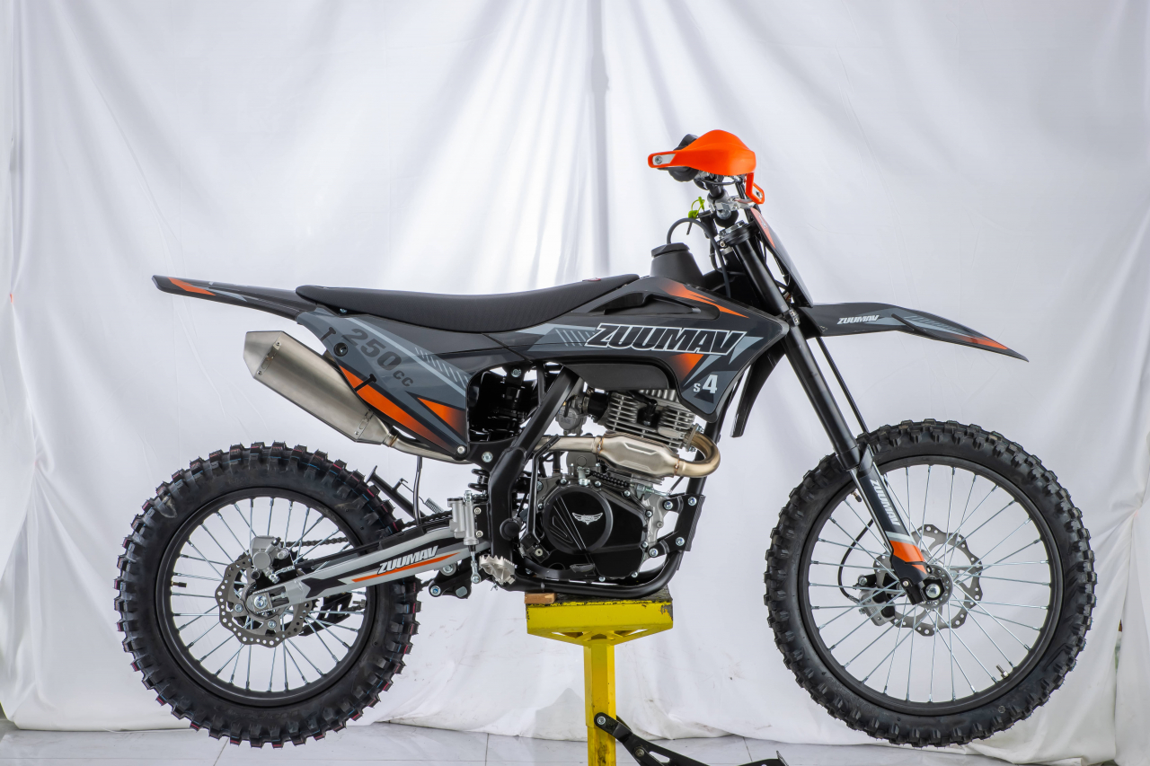 Pitbike 250cc Zuumav S4L 19/16" je nový model s originálnym dizajnom a športovým motorom ZS 250cc a vysokým výkonom 12 Kw (16,3 PS), manuálna 5 stupňová prevodovka, kvalitné polepy 3M, športový výfuk s úchvatným zvukom, športové sedlo, predné aj zadné hydraulické kotúčové brzdy (zadné-nožné), masívne predné tlmiče, zadný plynokapalinový tlmič, elektrický štartér + nožné našľapávanie, predné koleso 19 palcov, zadné koleso 16 palcov a práškový lak cross-frame.