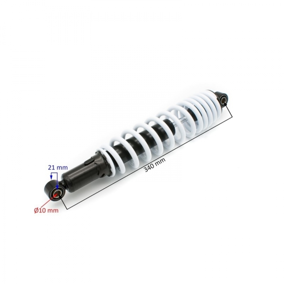 Celková dĺžka: Priemer otvorov: 10 mm Priemer pružiny: Šírka otvorov: 21 mm Priemer tlmiča ( celkový ): Vzdialenosť od osi po os. 340mm